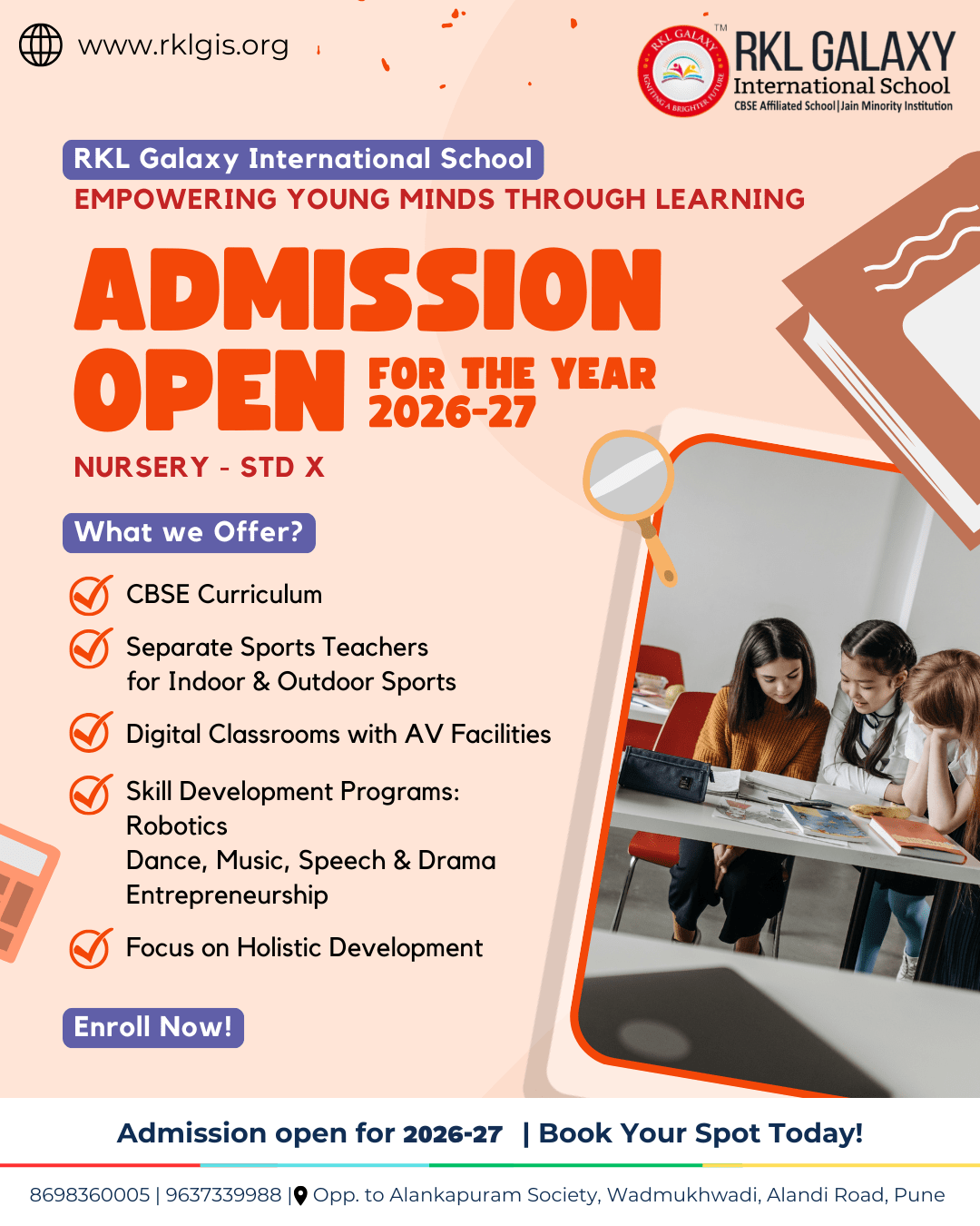 Students receive top-notch Western and classical music training from Trinity-certified teachers and Gandharva-affiliated instructors.As one of the leading schools in Charholi, we prepare students for success in the business world. Choose RKL Galaxy International School for an extraordinary educational experience that nurtures academic and extracurricular excellence.